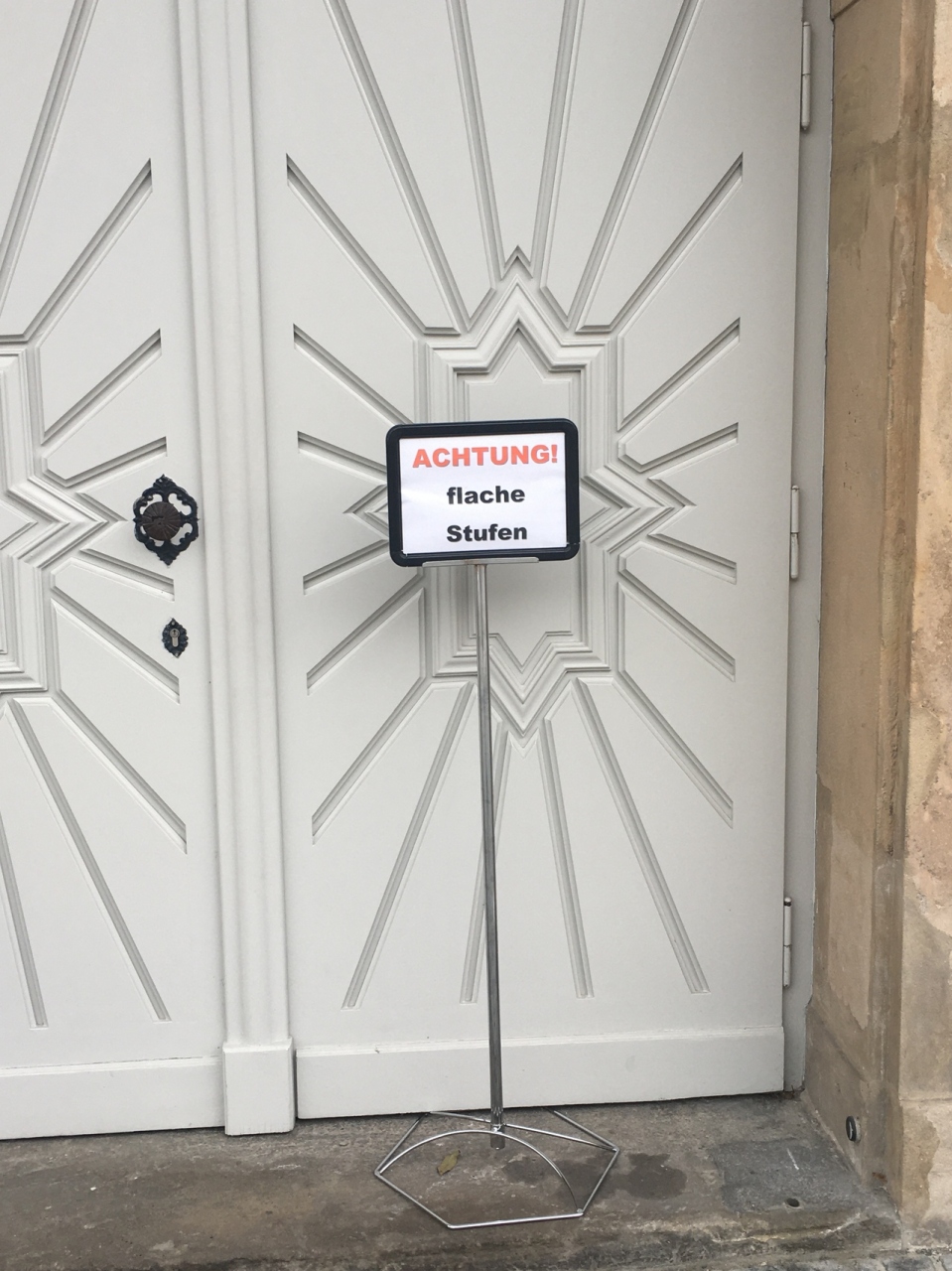 辺境伯夫人で、プロイセンのフリードリヒ大王の妹のヴィルヘルミーネが辺境伯と結婚したことで建てられたオペラハウスで、世界遺産です。外側が工事中で、しかも入り口に、段差に注意というドイツ語の立札が入り口を塞ぐようにあったので、入っていいのか戸惑いました。内部でフィルムを見てガイドさんのドイツ語解説を聞きました。照明が暗いですが綺麗でした。