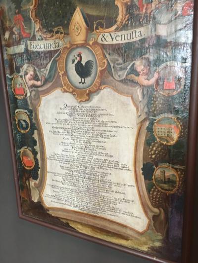 土曜日14時過ぎに行くと、表の看板にドイツ語で、ツアーは15:30と書かれていたので一回諦めて帰ろうとしましたが、念のため中で聞くと14:30のツアーがあると言われたので参加。チケットは4ユーロでした。ドイツ語のガイドツアーで、40分ちょっと掛かりました。最初のホールなど、内部は結構きれいな装飾でした。