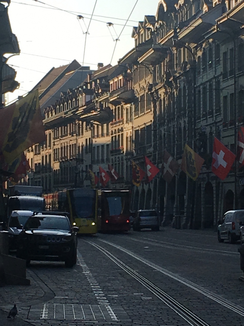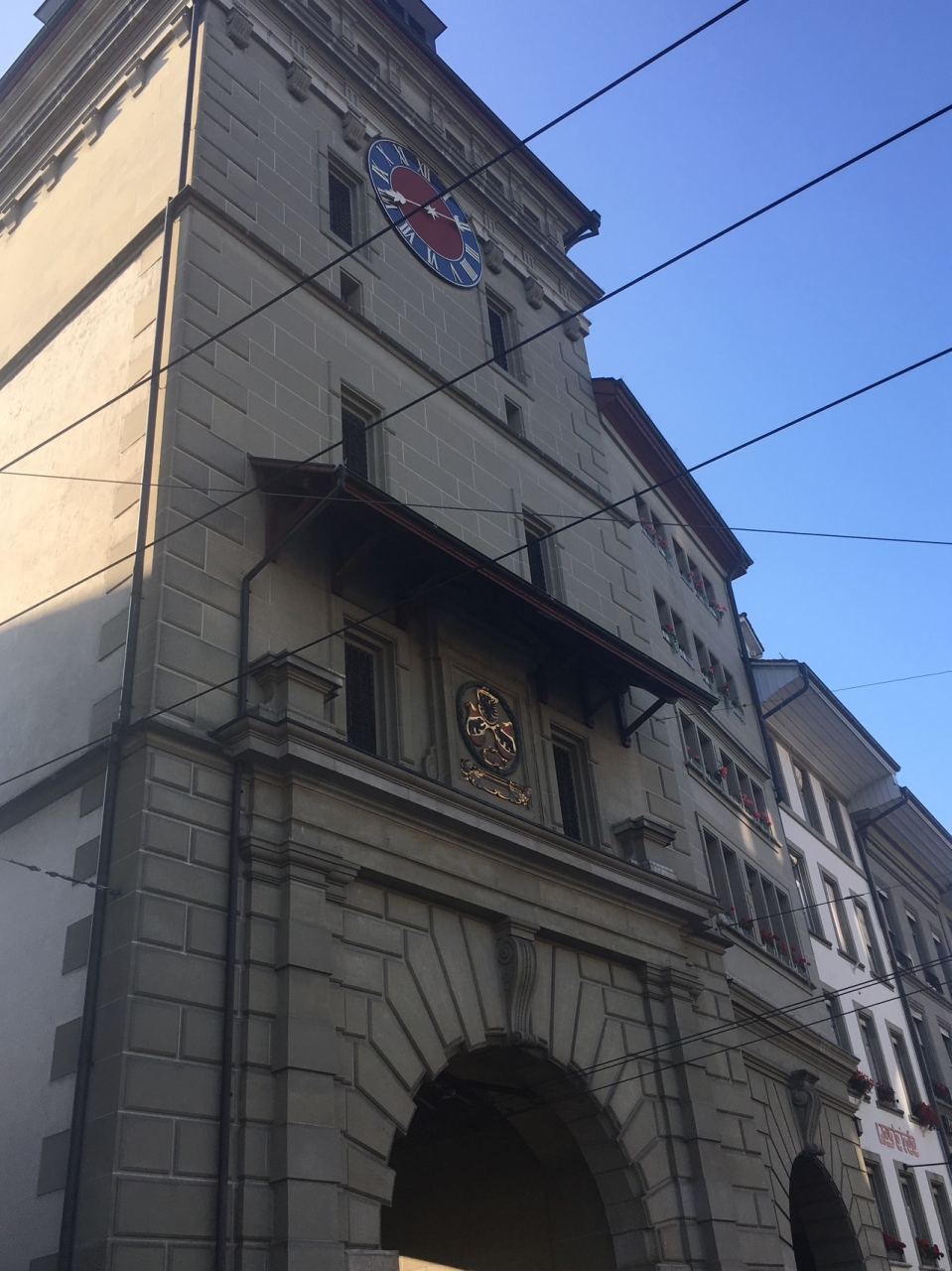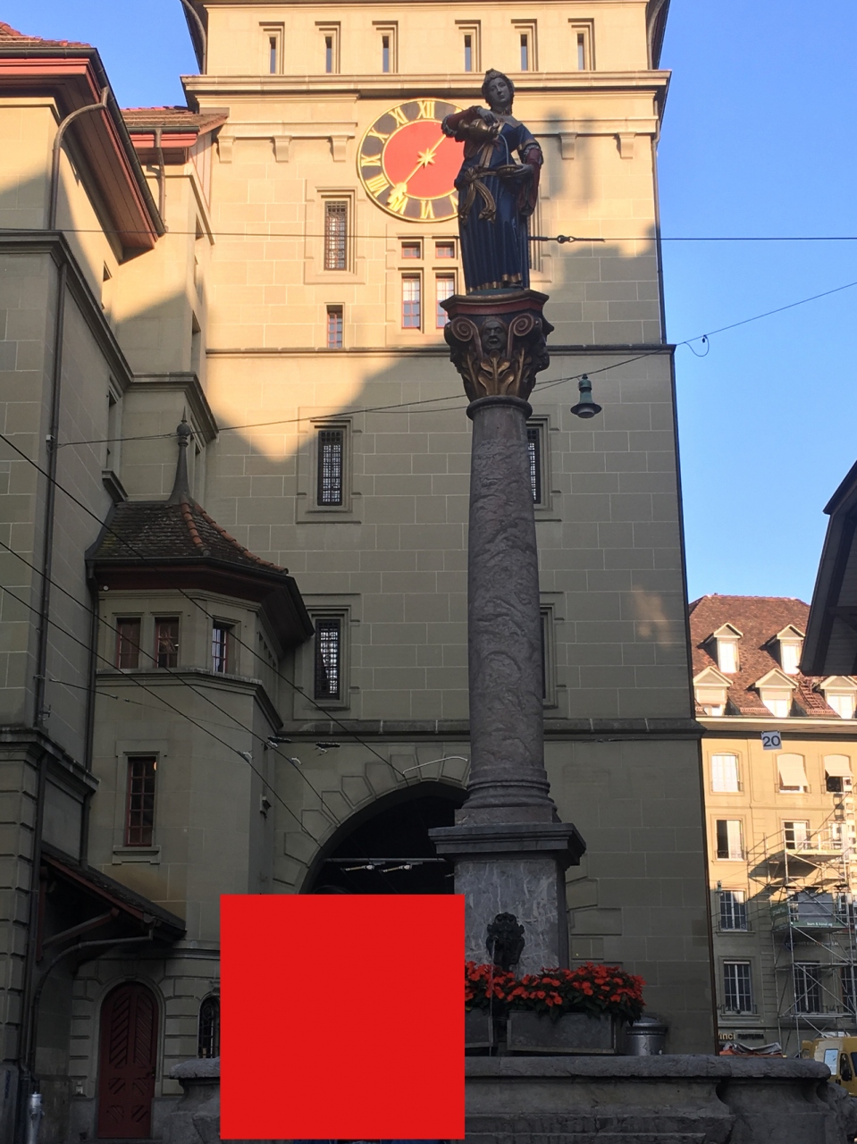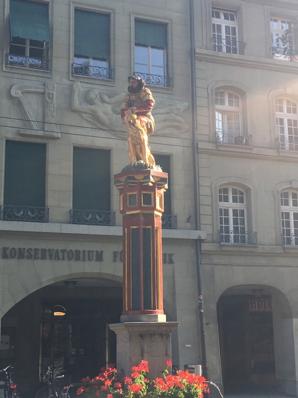 青い服を着て水差しを持った女性の像で、私財を投じてベルンに病院を建てたアンナ・ザイラーという女性を讃える像だそうです。噴水の水は注意書きがない限りは飲めるらしく、地元の人も自転車を止めてペットボトルに水を汲んでいました。