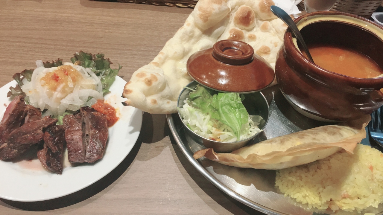 日比谷シャンテ地下にあるカレー屋さんで、夜によくふらりとひとりで立ち寄ります。たまに待ち時間がありますが、大抵席に案内されます。セットメニューのカレーはスープタイプの野菜カレーが多いですが、サイドメニューには羊肉もあります。インド料理以外にも、卵の包み揚げのブリックなど、国際色豊かで美味しいサイドメニューが充実してるのでお気に入りのお店です。