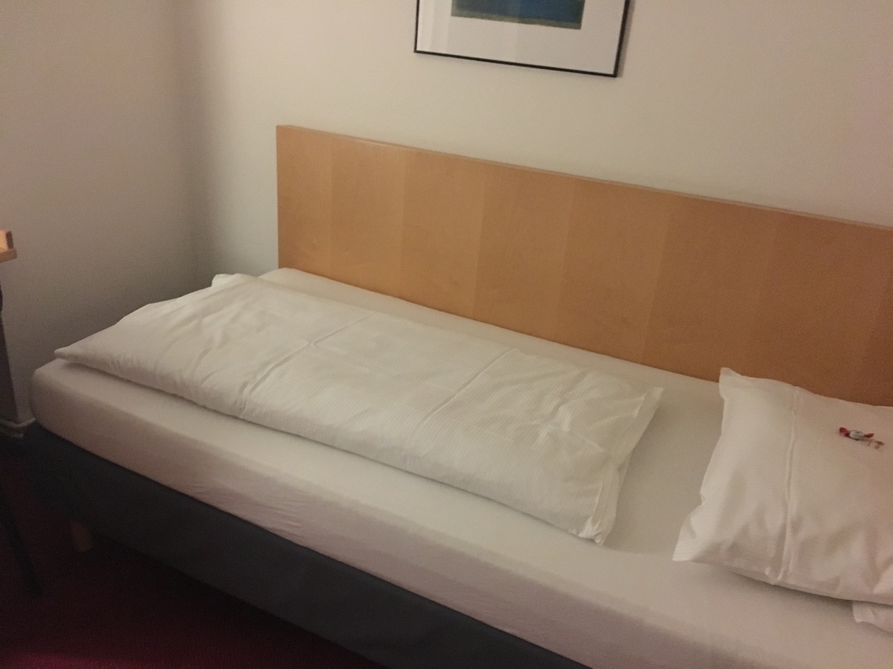 デュッセルドルフ中央駅から近く、口コミも悪くないので選択。チェックイン時にデュッセルドルフ市内交通無料券をもらえました。部屋は結構年季が入っている感じで、バスタブはなく、ベッドと机という感じのシンプルな部屋ですが、寝るだけだったので問題ありませんでした。