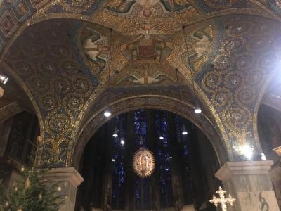 ネットで写真を見て実物を見たくて訪問。当日は雨で、ステンドグラスから差し込む光がなかったので暗く感じましたがそれでも内部は美しかったです。晴れた日の昼間はもっと美しいと思います。写真を撮るのに係員に1ユーロ支払うと聞いていたのですが、はじめは誰が係員か分からず、しばらくうろうろする羽目になりました。