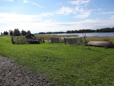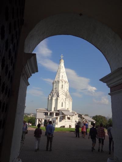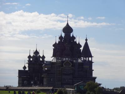 燃える火のようなフォルムの木造教会は「プレオブラジェンスカヤ教会」です。2016年8月現在、修復中のため、上3分の1くらいの部分が足場が組まれて宙に浮いたような感じになっています。そこが写らないような角度で写真をとれば十分綺麗なので、修復中でも訪れる価値はあります。他には、農民の家(富農・中農・貧農のランクあり)など、興味深い木造建築が散在しています。