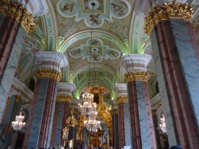 モスクワのワシリー寺院に似ていますが、こちらの方が外観がこっている感じがしました。ネフスキー大通りから川沿いに曲がるのですが、大通りから既に見えています。中も美しいですが、外から眺めるのでも十分楽しめると思います。夜はライトアップされるようでしたが、夜遅くならないと点灯しないようで、私は見られませんでした。