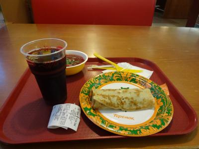 英語メニューがありました。店内は空いていて、ゆっくりテーブルで食事ができました。カード支払いができましたが、カードリーダーの表示が全てロシア語だったので、決済に手間取りました。私はイクラのブリヌイとボルシチ、クヴァスをオーダーしました。味はまあまあです。