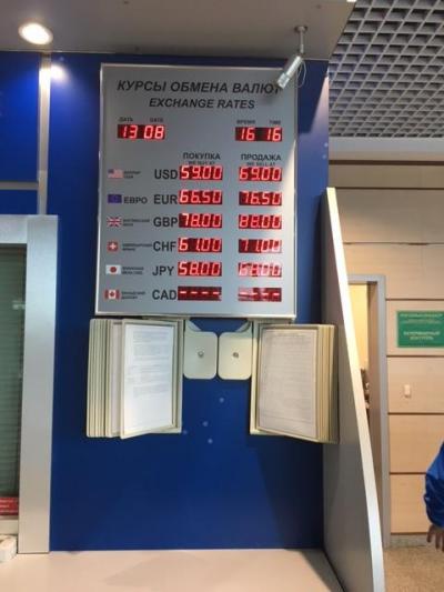 往復JALでモスクワを訪れた時に利用しました。私が見つけられた両替所は国際線到着出口付近に1軒でした。休憩時間には容赦なくクローズされますので、面食らいました。日本円↔ルーブルの両替が可能です。空港内はもちろん英語表記がありますから迷いませんでしたし、市内とのアクセスはアエロエクスプレスで1本なので、ロシア語が分からなくてもそれほど不便はかんじませんでした。