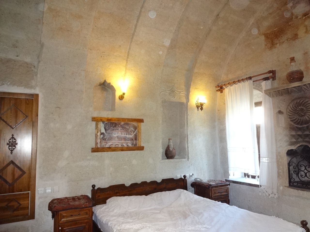 ツアーで利用しました。深夜到着でしたが、オーナーのお父さんが迎えてくれ、ウェルカムドリンクにカッパドキアワインをいただきました。家族経営のとじんまりしたホテルで、朝食もおいしかったです。周りにレストランなどはありませんが、ホテルで夕食をとれますし、ツアーなどの手配も相談にのってくれるみたいです。部屋もすてきだし大満足!
