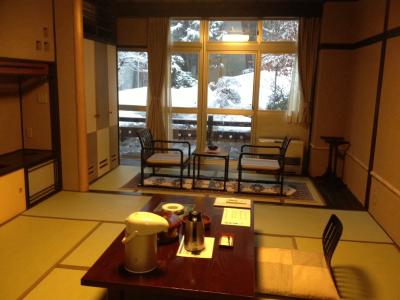 片品村の中心地区である鎌田の大通り沿いにあり、アクセス良好です。鎌田バス停も徒歩数分です。部屋は和室で、食事は部屋食ではなく別室でとる形式です。夕食のニジマスの燻製はとてもおいしいです!他にもイワナの刺身をはじめとする豪華な料理に、お酒がすすみます。イワナの骨酒や秘湯ビールなど、お酒もおいしいです。