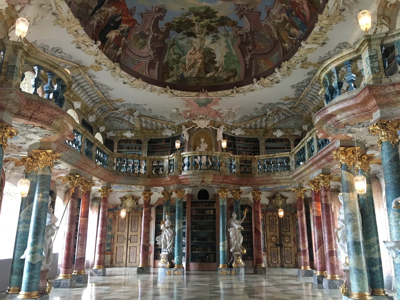 ウルム中央駅からはグーグルマップ通り、バスの4番でPrangerで降りるとすぐです。修道院敷地右に無料トイレ、正面に無料で見れるバシリカ、左手に図書館ホールの入口です。受付は日本でいう三階です。写真撮影は無料でした。ついた時は他に観光客がおらず、バロック様式の豪華なホールを独り占めできました。南ドイツ一美しい図書室と言われており、お勧めです!