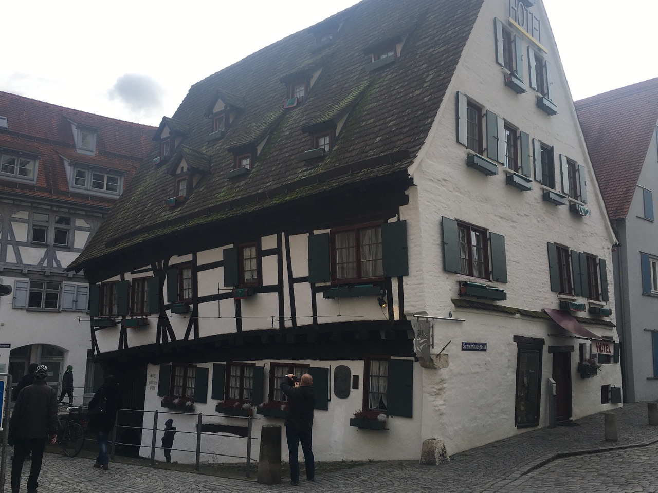 ドイツ語でschiefes Haus(シーフェスハウス)、つまり傾いた家という意味の有名なホテルで、外から傾きが見て取れるので、周囲は写真を撮る観光客がたくさんいました。ウルム 中央駅から歩いて行けます。