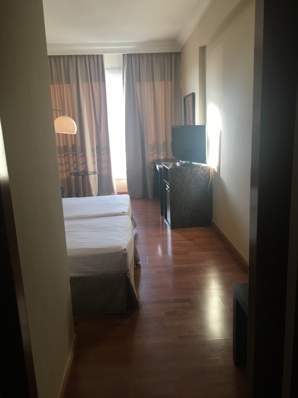 ツアーの指定ホテルでした。レオナルドホテルは系列のドイツのミュンヘンのホテルに続いて2回目の利用でした。こちらはWi-Fiが6階の部屋では弱かったのと、冷房が効かないのが難点でした。そのほかは、バスタブもあり、無料のミネラルウォーターがあったのが良かったです。