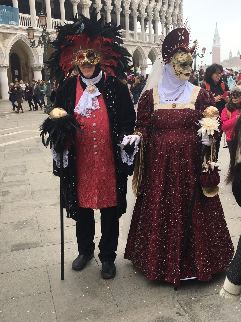 サンマルコ広場が一番仮装した人が集まっているメイン会場でした。3月初旬に行きました。仮装した人と一緒に写真を撮りたい観光客が周りを取り囲んでいるので中々ツーショットをお願いするのは難しかったです。広場から離れたところでなんとか1人綺麗な仮装の人と写真を撮れました。
