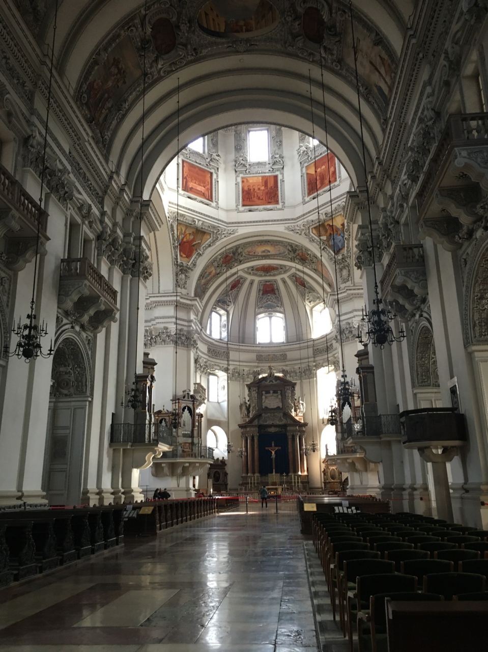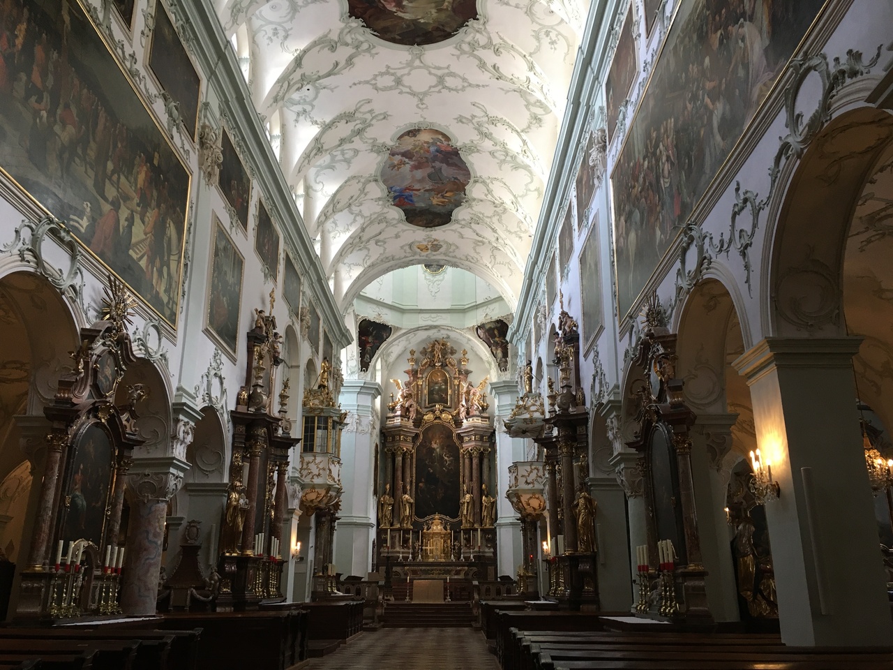 旧市街にあり、レジデンツ観光後に歩いて行きました。入場料は無料です。内装は白地に緑の草の模様の上品な感じで、絵画が天井や周囲にあり、個人的にはザルツブルク大聖堂よりも見応えがありました。所要時間もそれほどいらないので、ザルツブルクの旧市街散策のついでにぜひ訪れることをお勧めします。