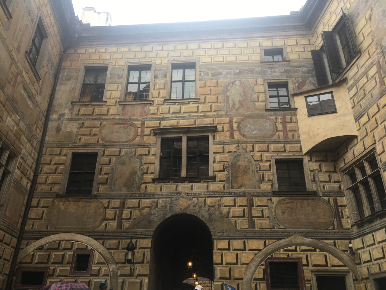 チェスキークルムロフで必見のスポットです。チケットにはいくつか種類があり、塔や博物館と城内ガイドツアーのチケットは別で買えます。お城の壁面のだまし絵(タイルの絵などが壁面に書いてある)だけなら無料で見られました。トイレは有料でしたがユーロも使えました。