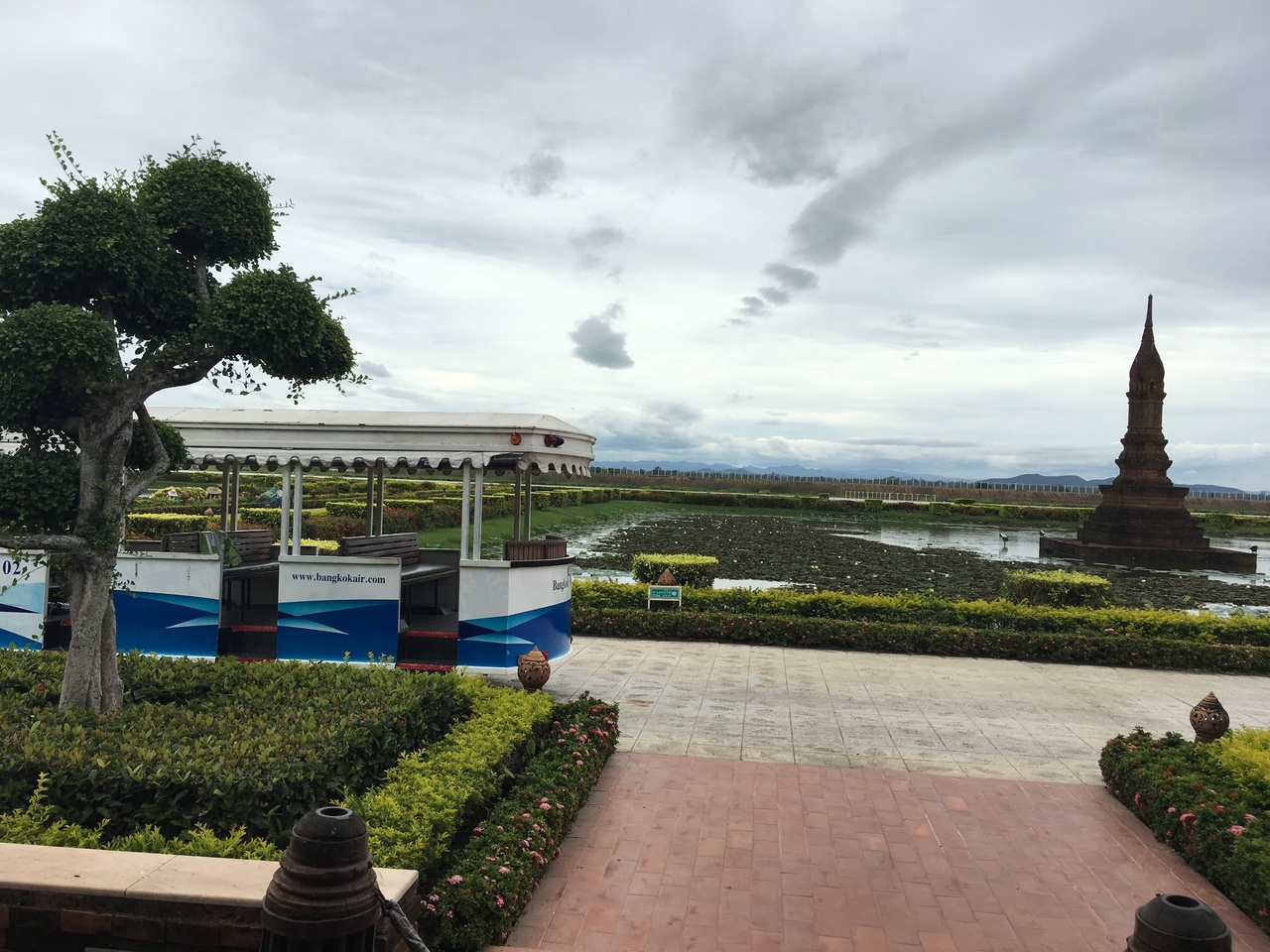 バンコクエアウェイズでバンコクからスコータイに日帰りで行きました。空港施設がすでに遺跡みたいな雰囲気で、とても綺麗な空港です。ラウンジがないので帰りは待合室に軽食やドリンクが用意されました。エアコンはなく、上にファンが回っている壁のない待合室だったのでちょっと暑かったです。