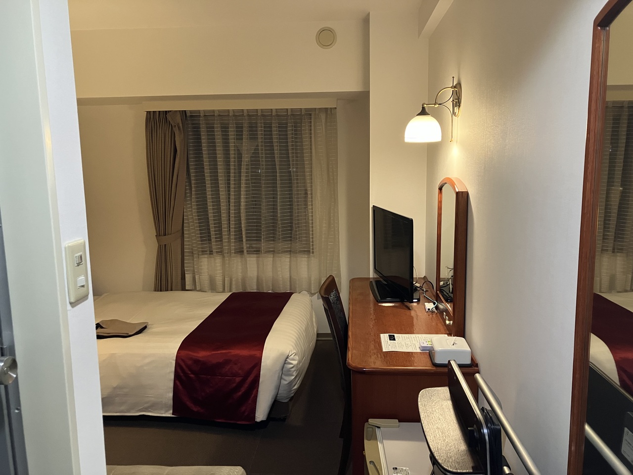 紅葉のベストシーズン、コスパの良いホテルでした。部屋も清潔でコンパクト、受付に常に人がいて、駅近で治安も悪くないビジネスホテルでした。近くにコンビニがあり、ウーバーイーツはエントランス指定で頼めました。