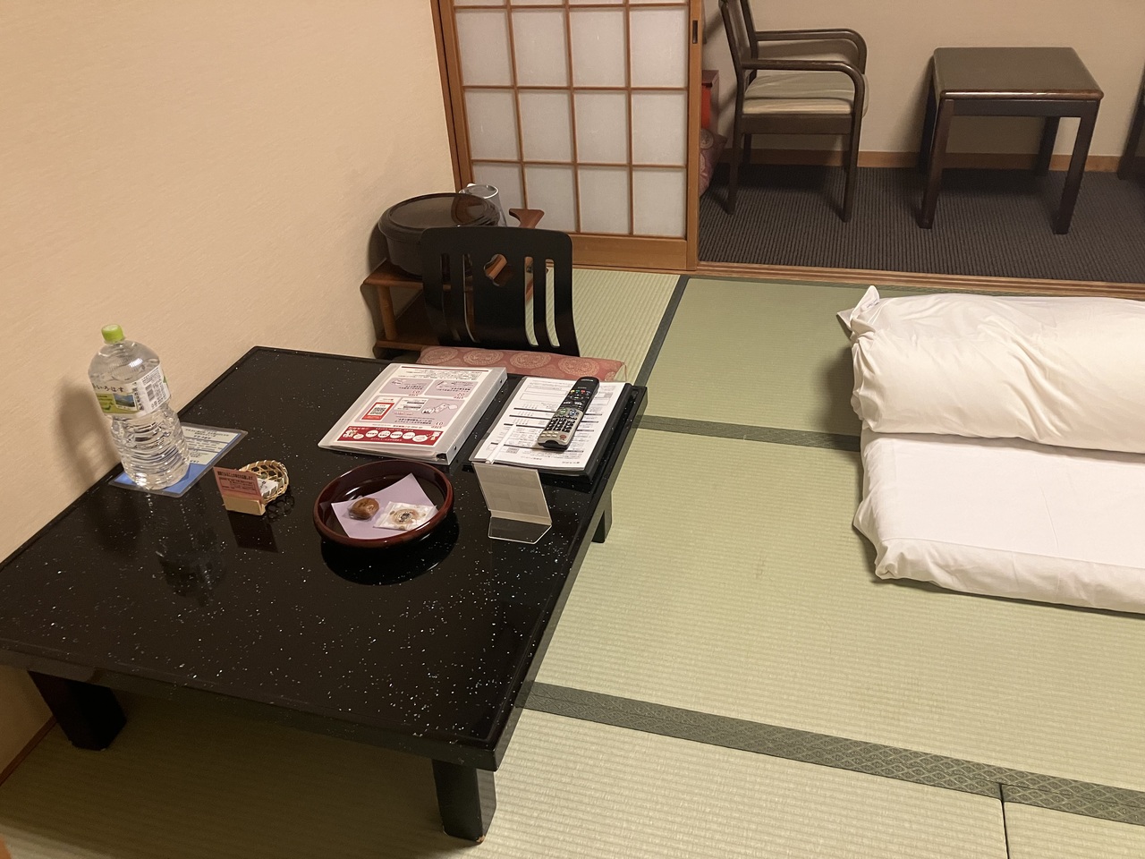 ネットでキャンセル待ちをしてやっと予約。温泉街までは少し歩きます。食事は温泉街の湯けむり食堂しろがね利用で、部屋に温泉付きで1人OKのプランでした。大浴場近くに飲み放題のアルコールドリンクがあり、部屋に持って行ってビールを楽しみつつ温泉も楽しめました。部屋はインバウンド向けにリフォームされたのか、畳にベッドで綺麗でした。