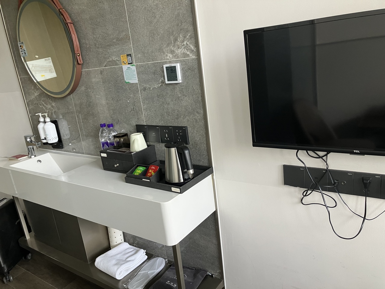 日本人にはインフォメーションの紙が日本語で渡してくれました。部屋の中の壁が薄く防音が良くなくて、水回りの音が丸聞こえなので、家族とかじゃないとちょっと気まずいと思います。部屋の中にペットボトルの水の用意はないのですが、洗面所に飲み水が出る蛇口はあります。地下鉄やバス停、セブンイレブンやスタバが近くてとても便利です。