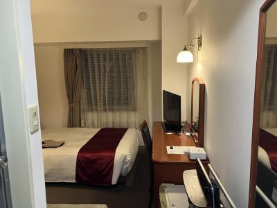 チェックイン前やチェックアウト後に荷物を預けに寄ろうかと思ったところ、人がいる時間が決まっているので無理でした。22時までにチェックインしないと無人になります。部屋は普通のビジネスホテルです。駅からの道は暗いですが、治安が特別悪い感じはしません。