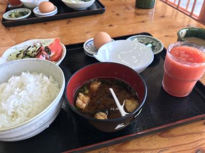 7:40というちょっと不思議な時間だけど早くから開けてくれる食堂があります。車中泊の旅人は朝が早くなりがちなのでとてもうれしい。バイクで全国を周っている人も来てました。