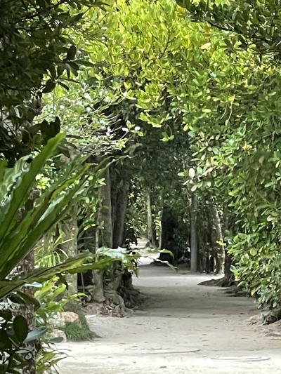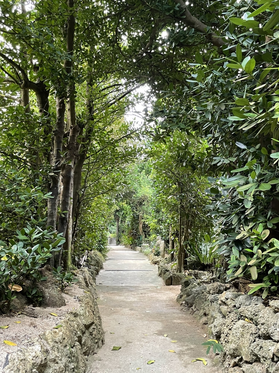 訪ねた沖縄北部は、いろいろなところにフクギ並木がありましたが、備瀬のフクギ並木は、長く続き、見応えがあります。私たちは、自転車を借りて走りました。気持ちよかったです。終点まで行った後は、海沿いを走りました。そちらもまた、素敵でした。