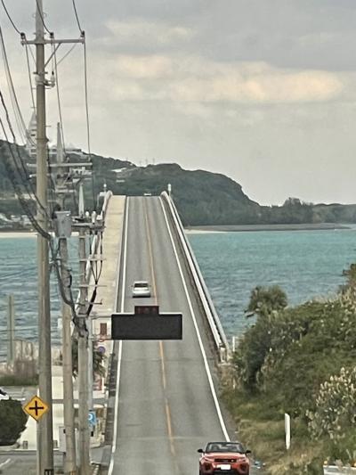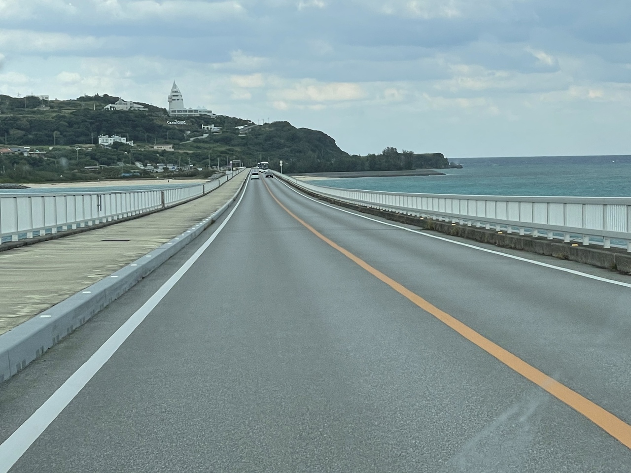 名護市の尾我地島から今帰仁村の古宇利島へかかる全長1960メートルもある長い橋です。橋から、とてもきれいな海が見えます。車で走っている時にはあまり感じませんでしたが、写真に撮ってみると結構勾配のある坂になっていました。