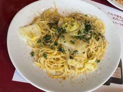 道の駅市川にあるイタリアンレストランです。生ハムが盛られたサラダのつくランチコースがお得です。今日は、春らしいあさりと白菜のパスタを食べました。カラスミがかかっていていいお味に。見た目も鮮やかできれいでした。休日だったせいか、ランチ時は、混んでいました。