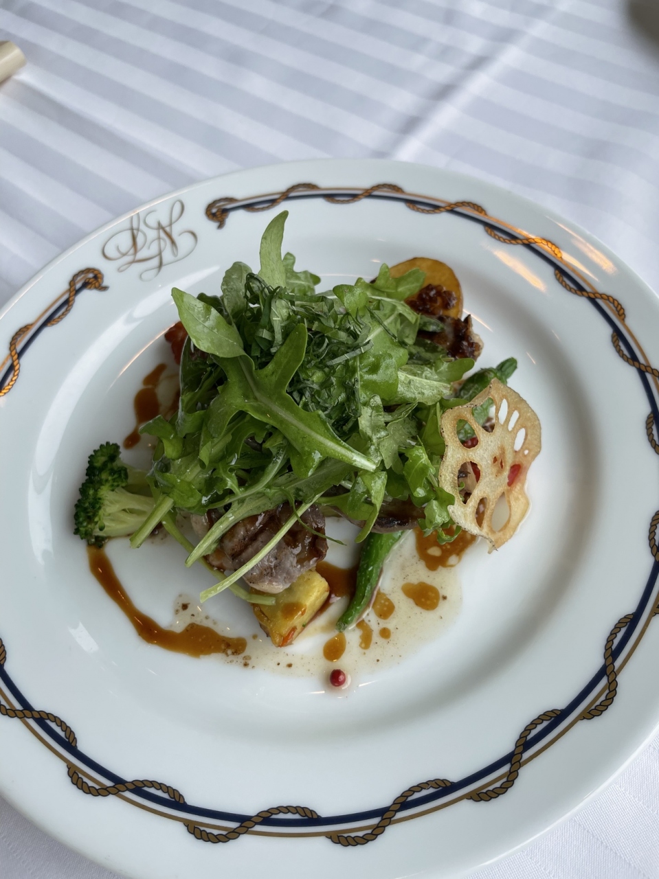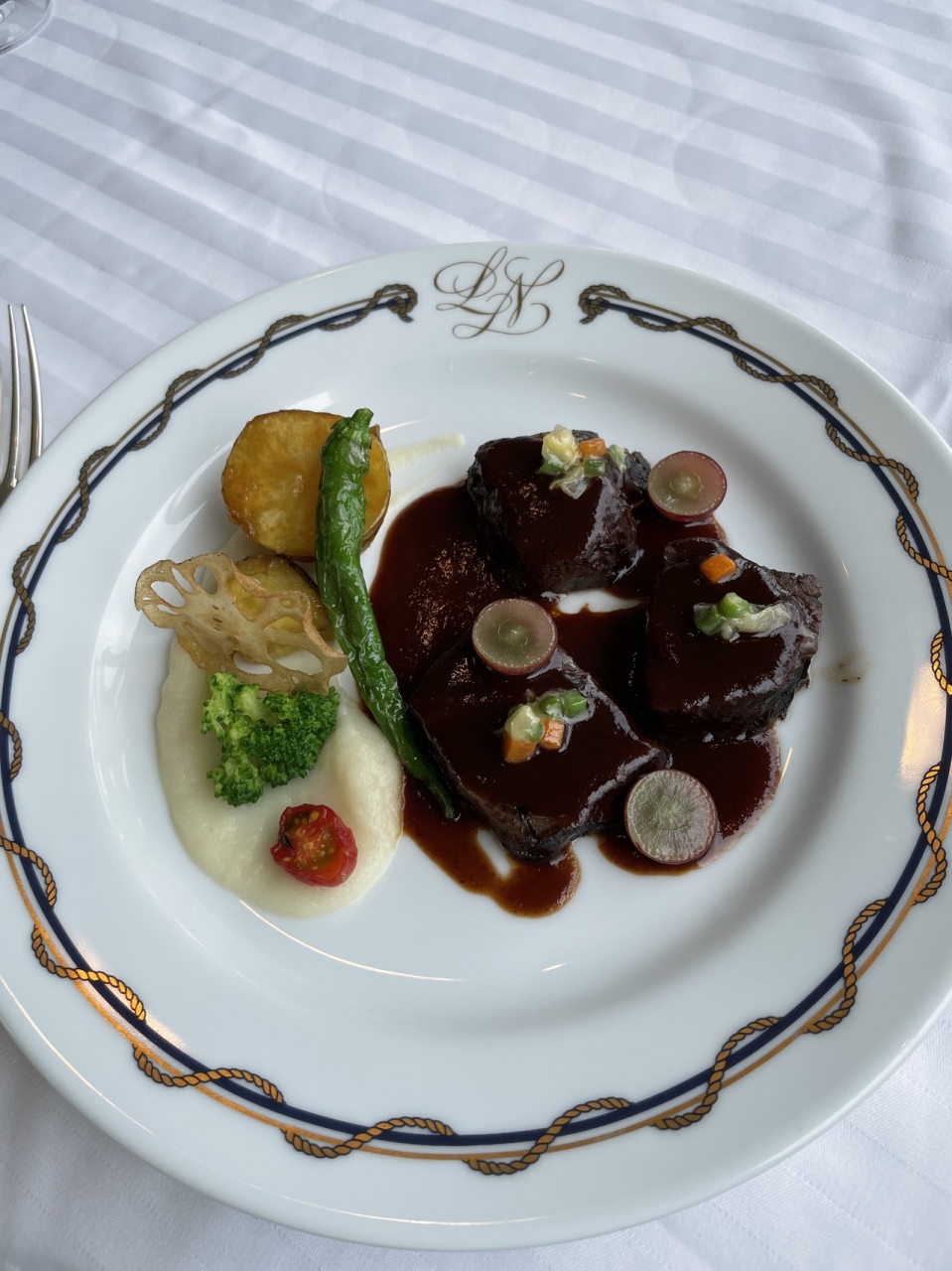 ホテルニューグランドのレストランです。山下公園や氷川丸、飛鳥などがよく見えます。レストランは広く、ソーシャルディスタンスは、ばっちり。窓の外の景色を眺めながら、ゆったりお食事をいただくことができます。ランチコースをいただきましたが、お料理ももちろんおいしいです。女子トイレも、ピンクが基調でとてもかわいいです。