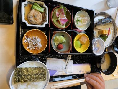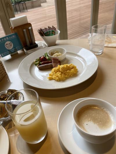 県庁近くのホテル国際21長野のレストランです。地下ですが、窓の外にテラスというか庭が広がり、明るいです。外を見ながら朝食をいただきましたが、気持ちよかったです。朝食は、和食か洋食のセットメニューです。セルフですが、和食は、ご飯や味噌汁のおかわりができ、洋食は、パンのおかわりができます。ドリンクは、ドリンクバーの利用で、コーヒーは、カップに入れて部屋に持って行くこともできます。