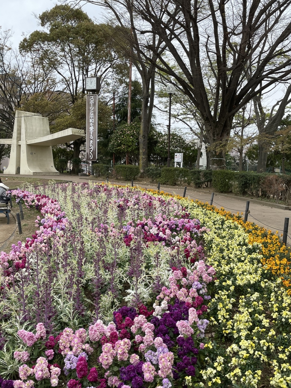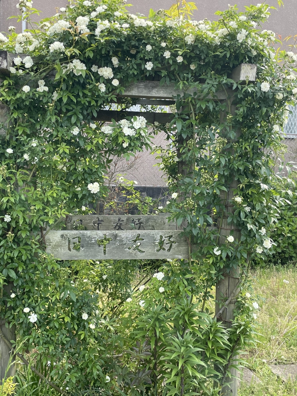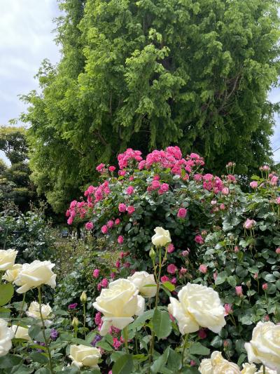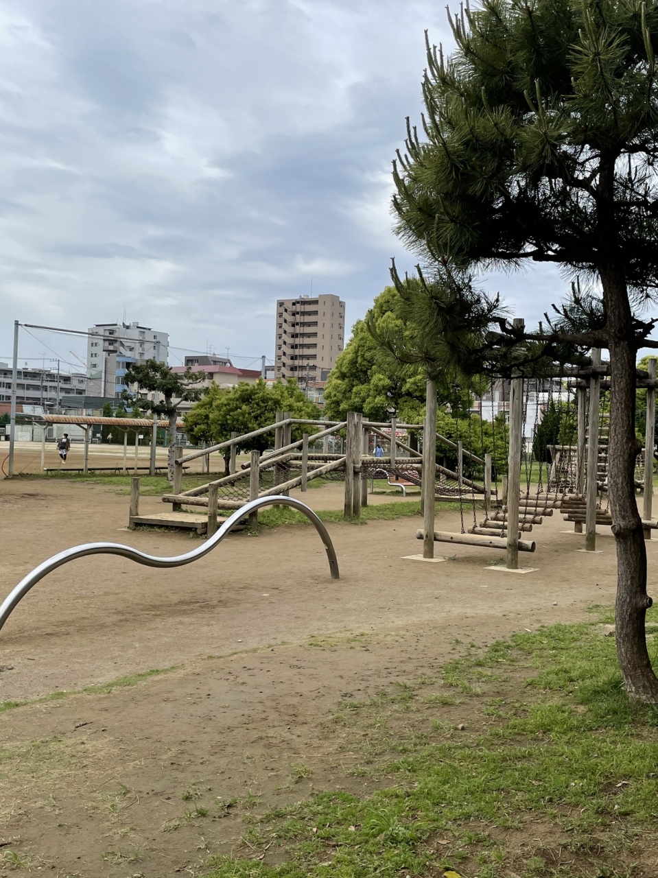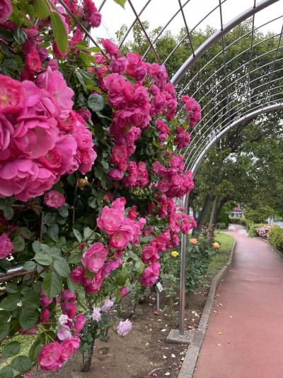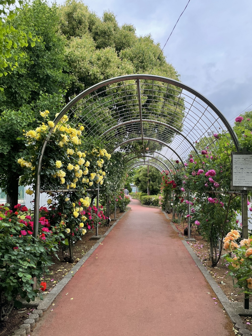 東京メトロ東西線行徳駅近くの街中にあります。公園の駅寄りの角にある小さなバラ園の花が満開で、とてもきれいです。脇を通るといい香りがします。公園に遊びに来た人や通りがかりの人が眺めて楽しんでいるようです。