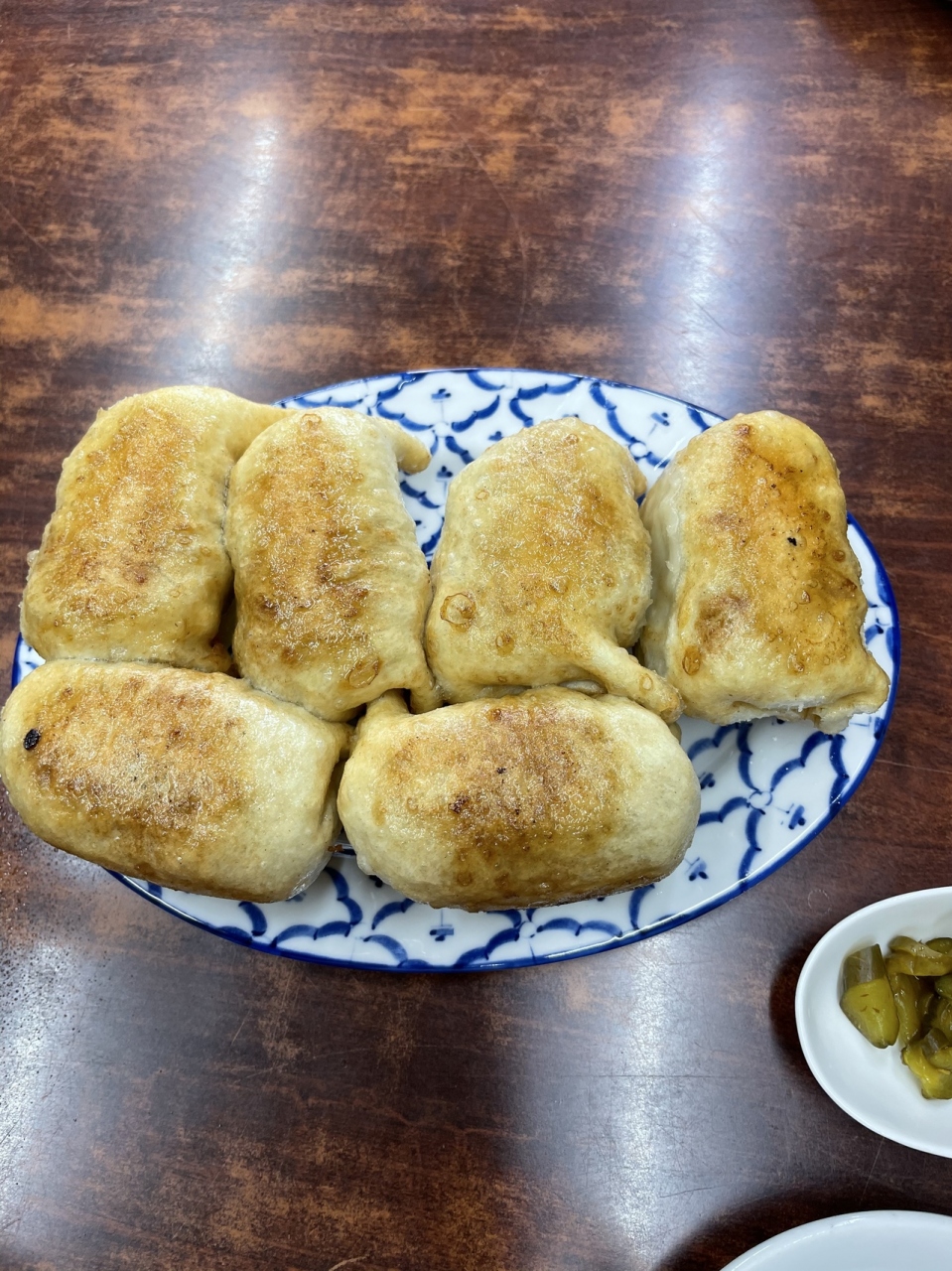 小さめの餃子3から4個分は、ありそうなくらい餃子1個のボリュームがあります。少し甘めの味付けのとろみのついたあんが皮の中にたっぷり入っています。ここの餃子にデビューしたのは高校生の頃なので何十年も前です。昔は、市川駅付近にあったのですが、こちらへ。懐かしくて無性に食べたくなるときがあります。今回はラーメンと共に。餃子は、二人でシェアして食べました。