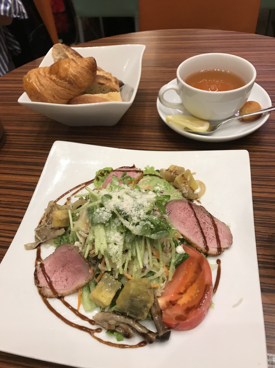 コレド日本橋の地下にあります。ランチ時は、肉かサラダかスープなどとのセットで小さくカットされたいろいろな種類のパンを食べることができます。パンは、なくなるとおかわりできます。また、コーヒーか紅茶、ジュースを選んで飲めます。
