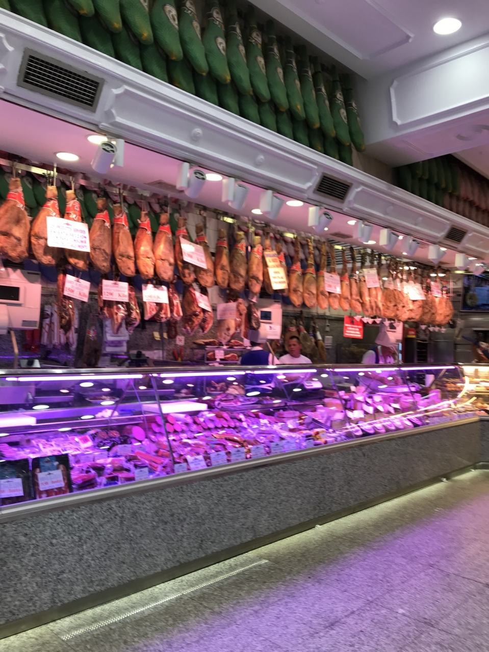 店内を見回すとたくさんの生ハムがあり、壮観です。販売もしています。バルは、とてもこんでいて、賑わっています。場所を確保して、注文するのが大変でした。生ハムをたべましたが、皿のサイズがあり、欲しい量を注文することができます。美味しかったです。