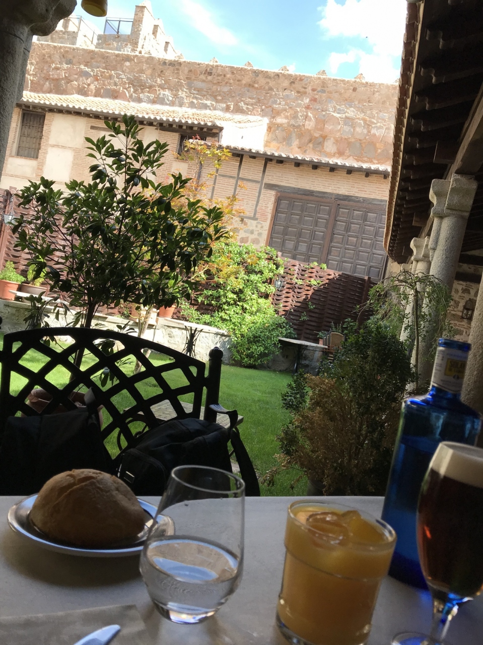 城壁を歩いている時に、上から見え、素敵だなあと思って、入店しました。中庭のすぐ先に城壁が見え、すばらしいロケーョンです。アビラ牛と、豆料理をいただきましたが、どちらも、とてもおいしかったです。時間をかけて、ゆっくりのんびりおしゃべりしながら、食事することができました。