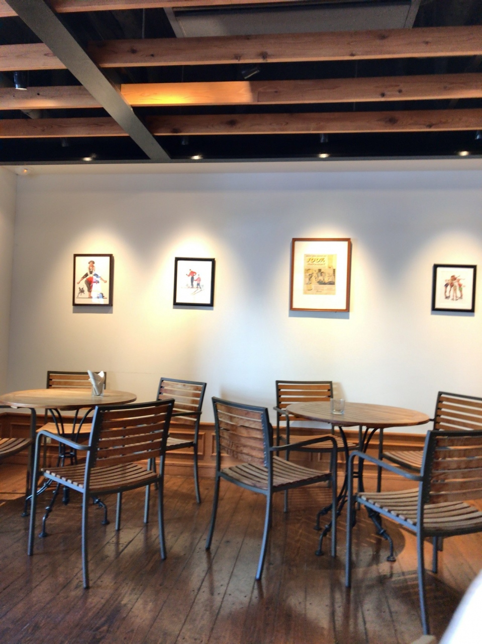 丸善の3階にあり、落ち着いたカフェです。本屋さんのビルにあるので、とても落ち着いた雰囲気です。広々としたカウンター席や、二人がけ用のテーブル席などがあります。カレーライスなどの軽食や、ワッフル、ケーキなどの、スイーツ、各種ソフトドリンクがあります。