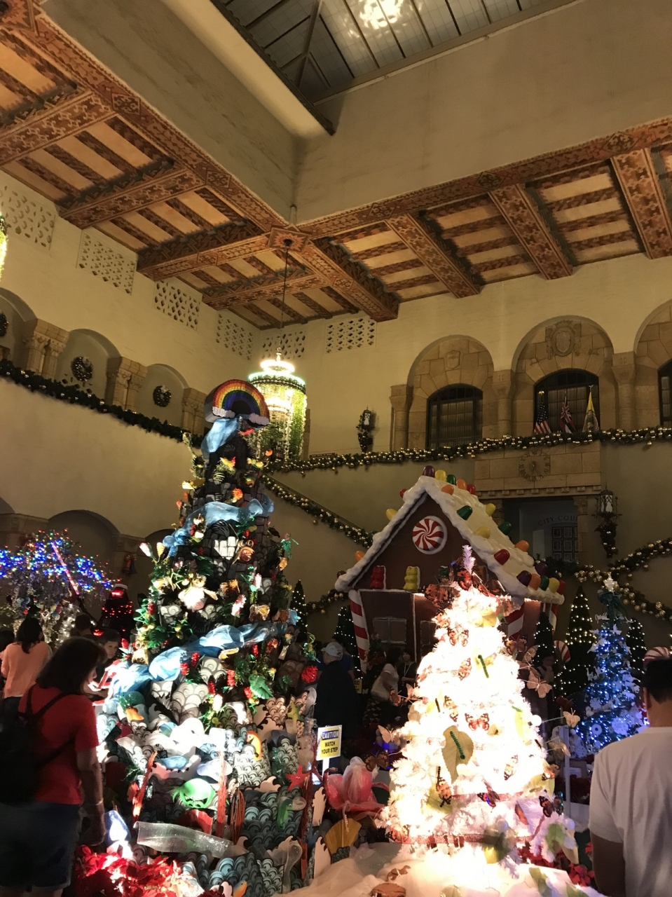 ホノルルから、2番のザ バスで行きました。乗るときにドライバーにシティライツに行きたいと言うと降りるところを教えてくれ、降りるときに、停留所から、市庁舎への行きかたを教えてくれました。市庁舎は、クリスマスのかざりつけで、素朴なイルミネーションが、可愛くきれいでした。夕方早めにいったので、はじめは、わりと空いていて、しゃしんをとったりしやすかったのですご、時間がたつにつれて混んできました。市庁舎の周りの、銀行、会社もイルミネーションがきれいでした。