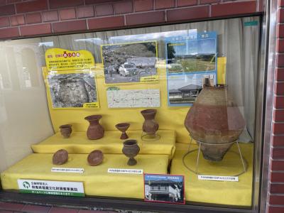 関越自動車道のパーキングエリアです。赤い煉瓦造りのようなおしゃれな建物は、冨岡製糸工場を模したものだそうです。外に埴輪などがあり、上信越自動車道を作った際に出土したものを模したものだそうです。また、トイレの近くには、このPAを作った際に出土した弥生土器も展示してありました。