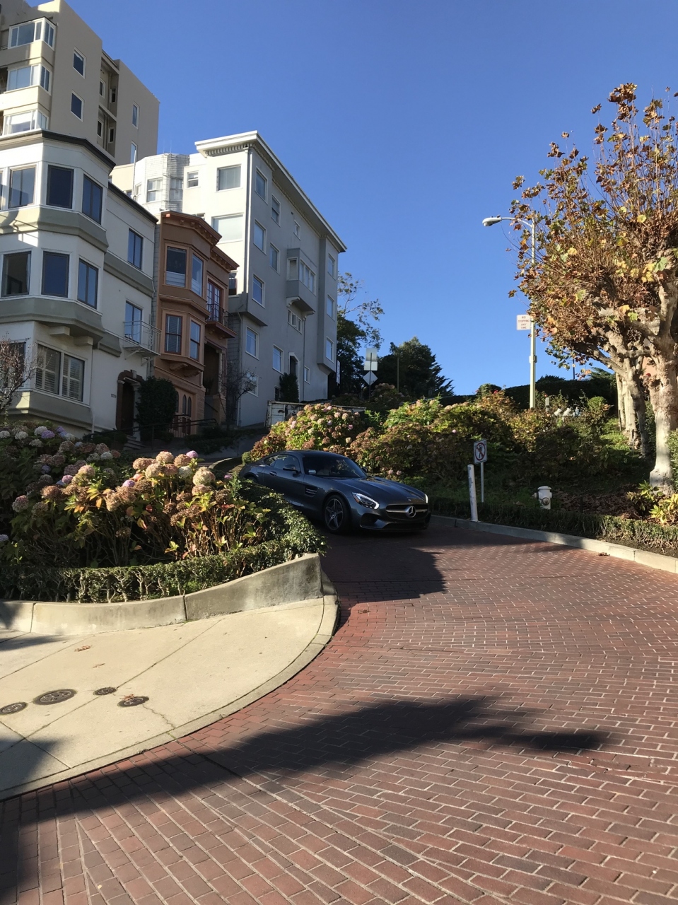 ケーブルカーで行きました。本当に写真で見るようなすごい坂を車がはしっているのでびっくり。道路の脇には、紫陽花がたくさん植えられていて、シーズンだったら、とてもきれいだろうなと思いました。周りに立っているお家も、立派な家ばかりでした。