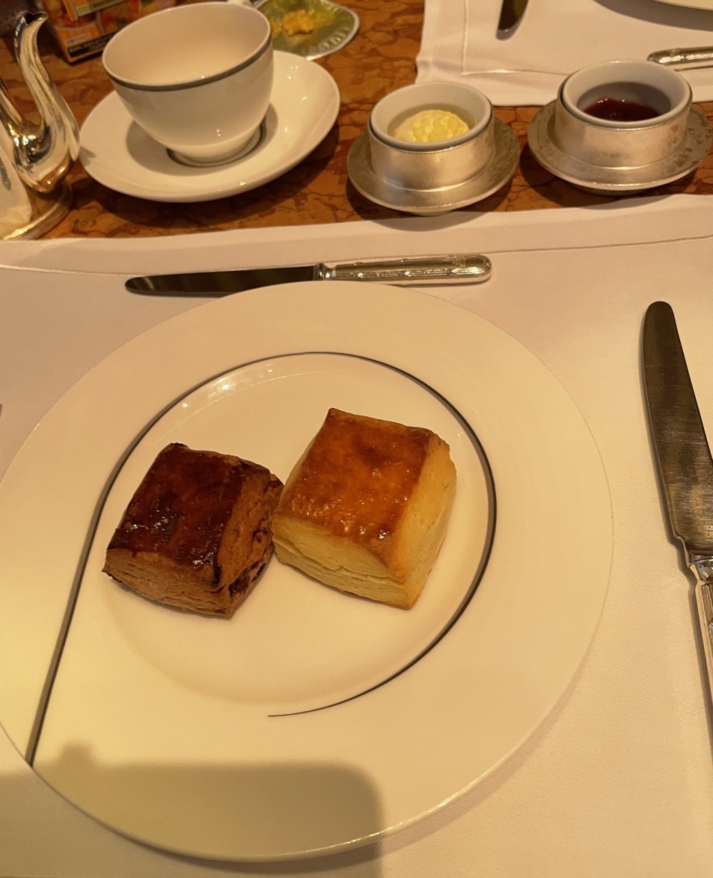 ペニンシュラホテルのロビー階にあるカフェレストランです。アンテプリマとのコラボのアフタヌーンティーをいただきました。プレーンといちご味のスコーンは、どちらもサクサクでとてもおいしく、満足。そしてセーボリーもスイーツも、ひとつひとつが丁寧に作られ、見た目も美しく、おいしくて、嬉しかったです。お茶も、いろいろ楽しめました。そして、ホテルの方々の気配りもすばらしかったです。