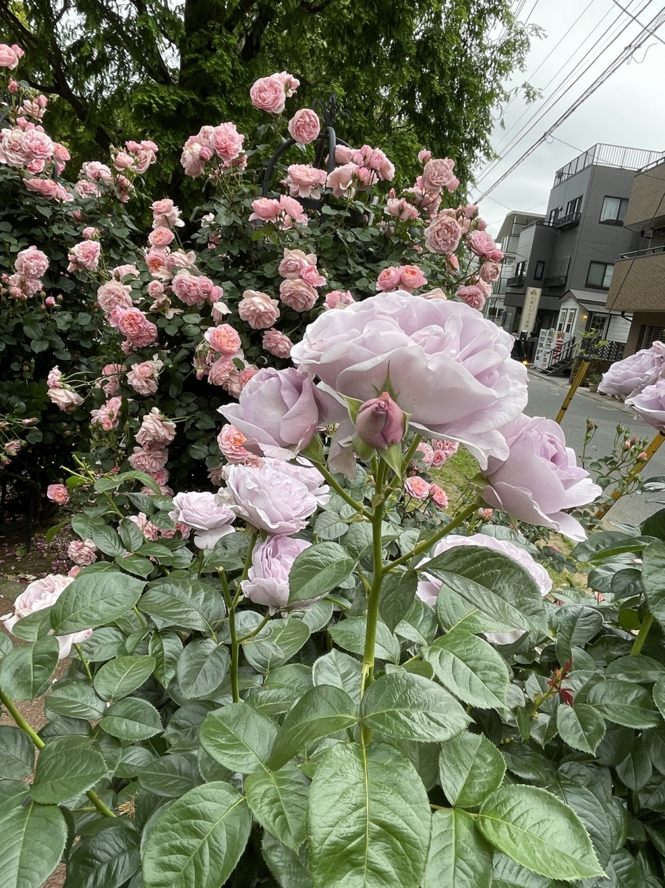 訪ねたのは5月中旬です。公園の一画にある小さなばら園のばらが、満開は過ぎてしまいましたが、まだまだきれいです。駅に近いので、買い物や散歩の途中に立ち寄る人々の目を楽しませています。今年は、噴水の水も出て、水遊びをする子供達もいて賑やかです。