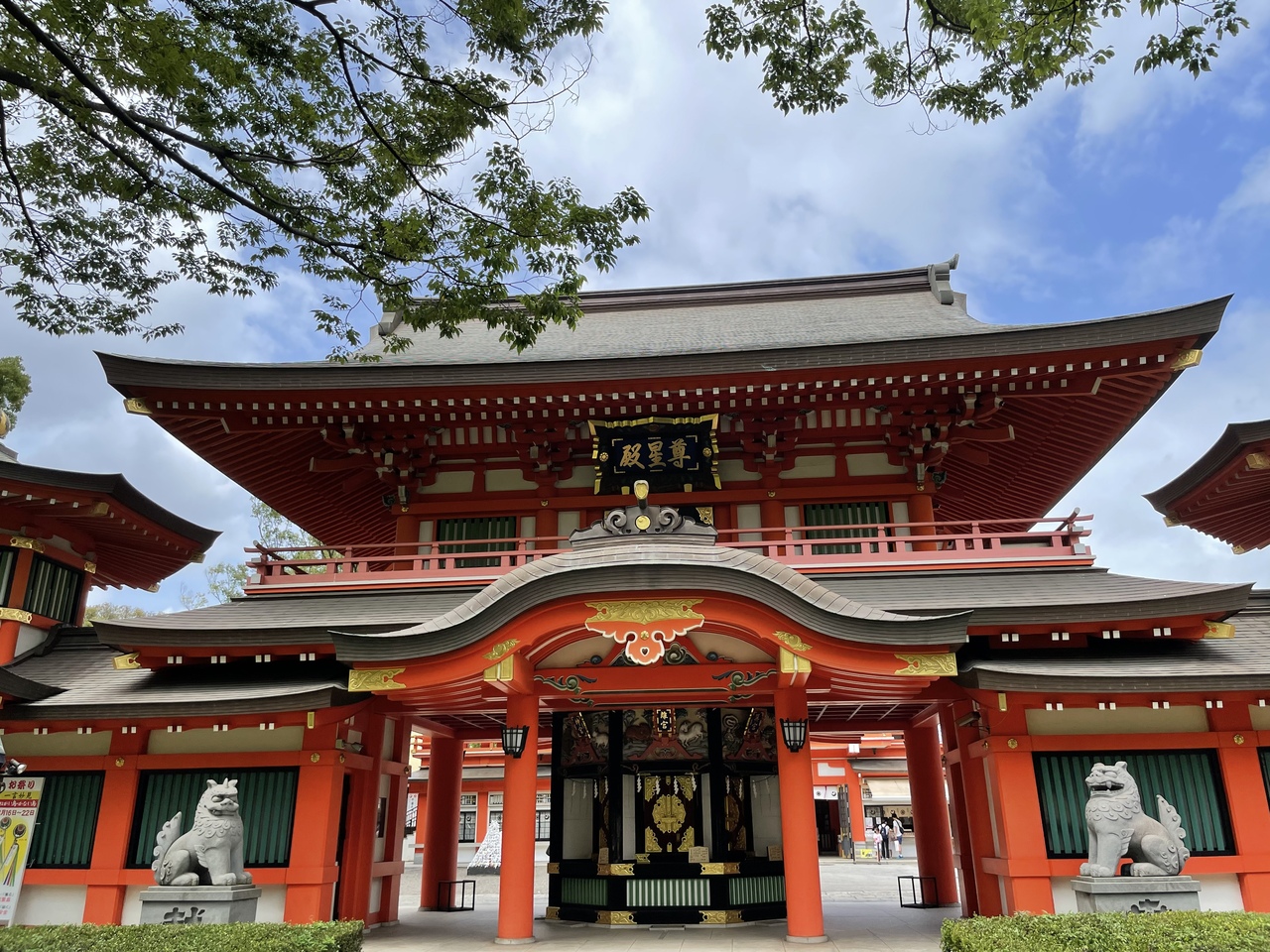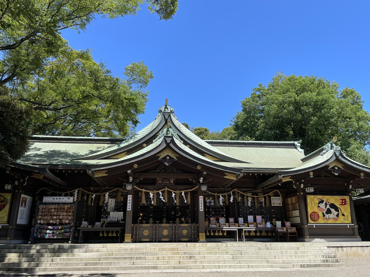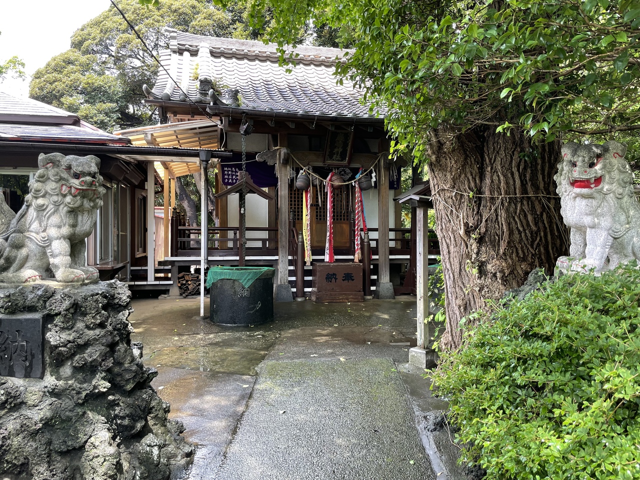 モノレール千葉公園駅の方から千葉公園に入る時すぐ隣にある神社です。赤い鳥居でなく、普通の木の鳥居や石の鳥居が何本も立ち並んでいます。雨上がりに訪ねたせいか境内に人気がなく静かというより、少し怖いような雰囲気でした。御神輿なども仕舞われていました。