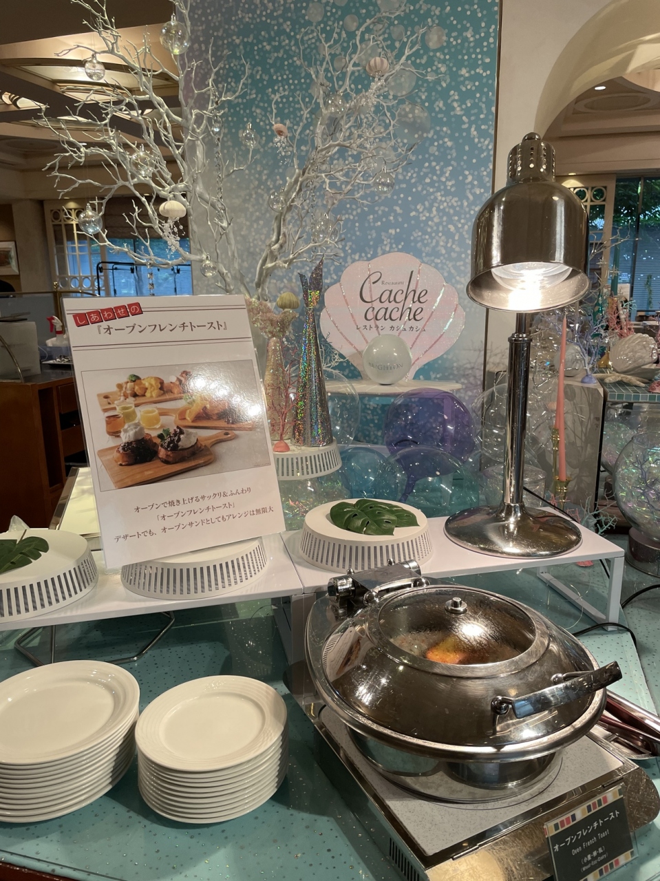 舞浜のホテルオークラ東京ベイのカフェレストランです。訪ねた時はケーキやパン、コーヒーなどの飲み物類の販売をしていました。イートインスペースもありました。パンが2割引なので食パンを購入しました。ふわふわもちもちでおいしかったです。今流行りのイタリアのお菓子マリトッツォも販売していて、ブリオッシュの中にクリームたっぷり、3種類の味があり、おいしそうでしたが、次の予定があったので購入しませんでした。また、次回食べてみたいです。