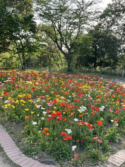 通称富田さとにわ耕園です。バスで行けるようですが、車がないとちょっと不便な所に、あります。駐車場は、広いです。訪ねた時は、芝桜やネモフィラ、ポピーなど春の花がきれいな時でした。人がそんなにいないので、ゆっくり見ることが出来ます。池の周りをぐるっと散歩することもできます。