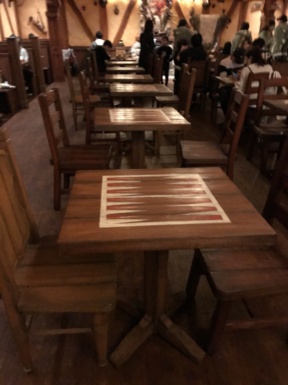 ディズニーランドの新エリアにできたガストンのパン屋さんです。カウンターで購入し、自分で好きなシートに座るスタイルです。室内はもちろんテラス席もあり、広いです。室内は、猟師の家風。新しいのでとてもきれいです。メニューは、パン類3種類とそのセットメニューです。今は、予約必須です。
