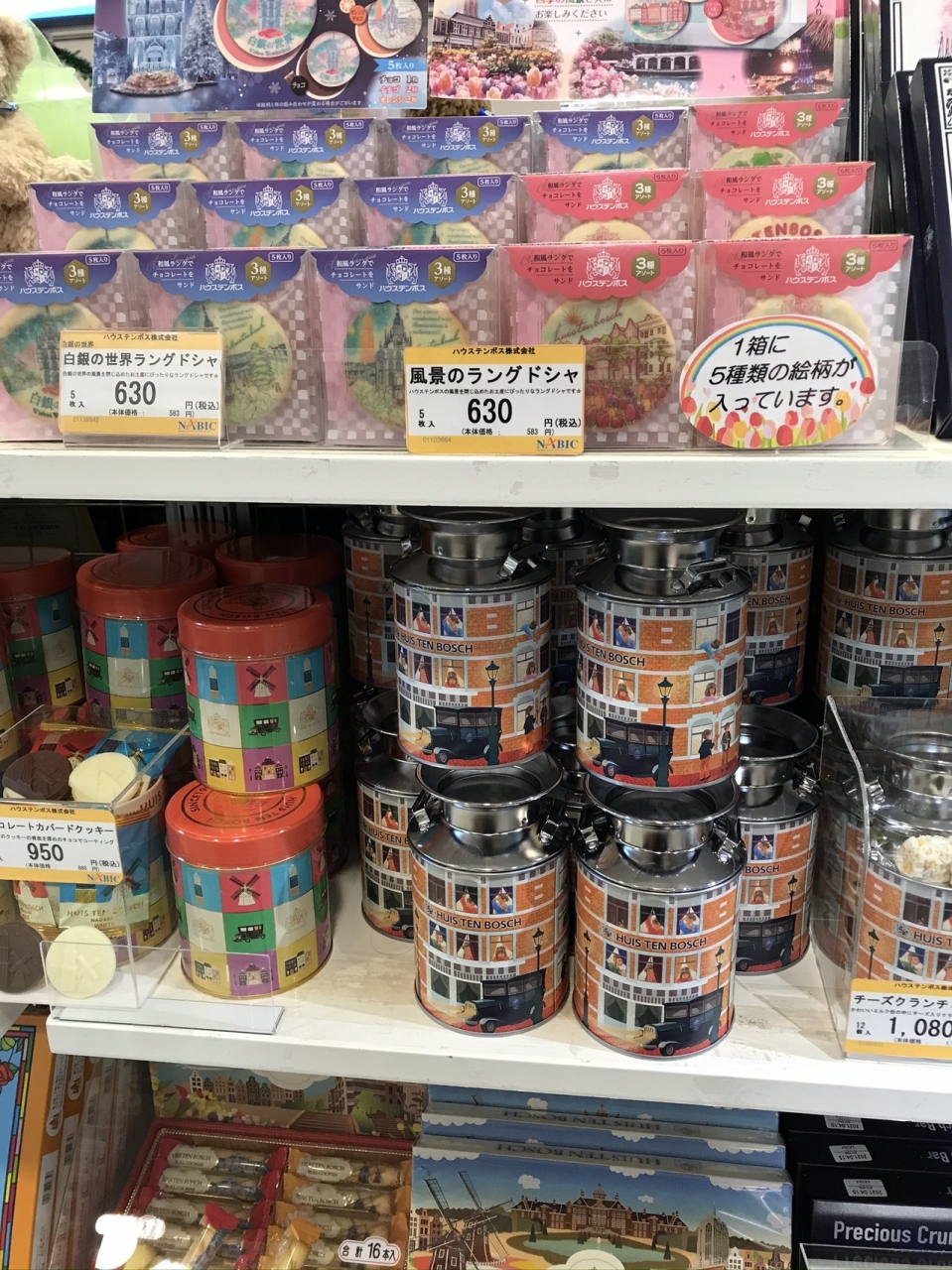 ハウステンボスの売店が長崎空港の2階にあります。ハウステンボス内で売っているミッフィーやクマなどのぬいぐるみやステーショナリー。クッキーなどのお菓子やハム、チーズケーキなども売っています。ハウステンボスに行ったわけではないのですが、チーズケーキがおいしいので、お土産に購入しました。