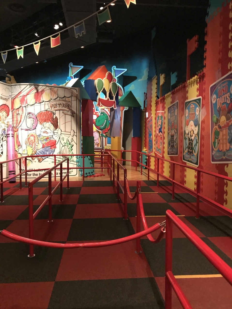 ディズニーシーのアトラクションの一つです。3Dメガネをかけて、カートに乗って、シューティングゲームをします。おとながやっても楽しいです。今は、スタンバイパスに当たらないと入れません。アトラクションのエリア全体がキラキラゴージャスにライトアップして、夜は、きれいです。蜜を避けるために間隔をあけて並ぶので、列はとても長いですが、どんどん進みます。