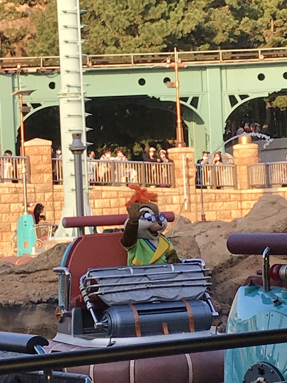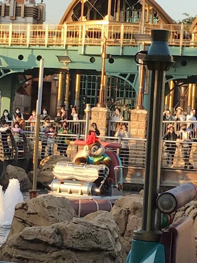 ディズニーシーにあるアトラクションです。3人乗りのボートのような乗り物に乗って水の中をくるくるまわったり、すーっと流れたりするアトラクションです。よって2つの列の並ぶ列によって、流れる水の場所がかわります。この日は、たまたまチップとデールが乗っていて感激しました。