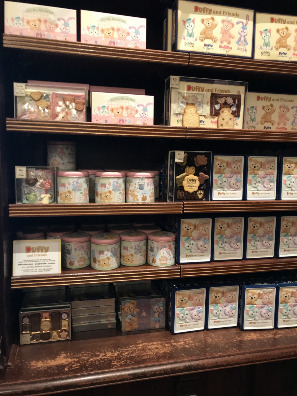 ディズニーシーのお土産屋さんです。ダッフィーの仲間がたくさん。シェリーメイちゃん、猫のジェラトーニ、ウサギのステラルー、犬のクッキーアンちゃんそして新入りの亀のオルメルなどの様々なぬいぐるみはもちろん、ステーショナリー、バックなどかわいいものがいろいろあります。見ているだけでも幸せ気分に。でと、ついいろいろと買ってしまいますが。
