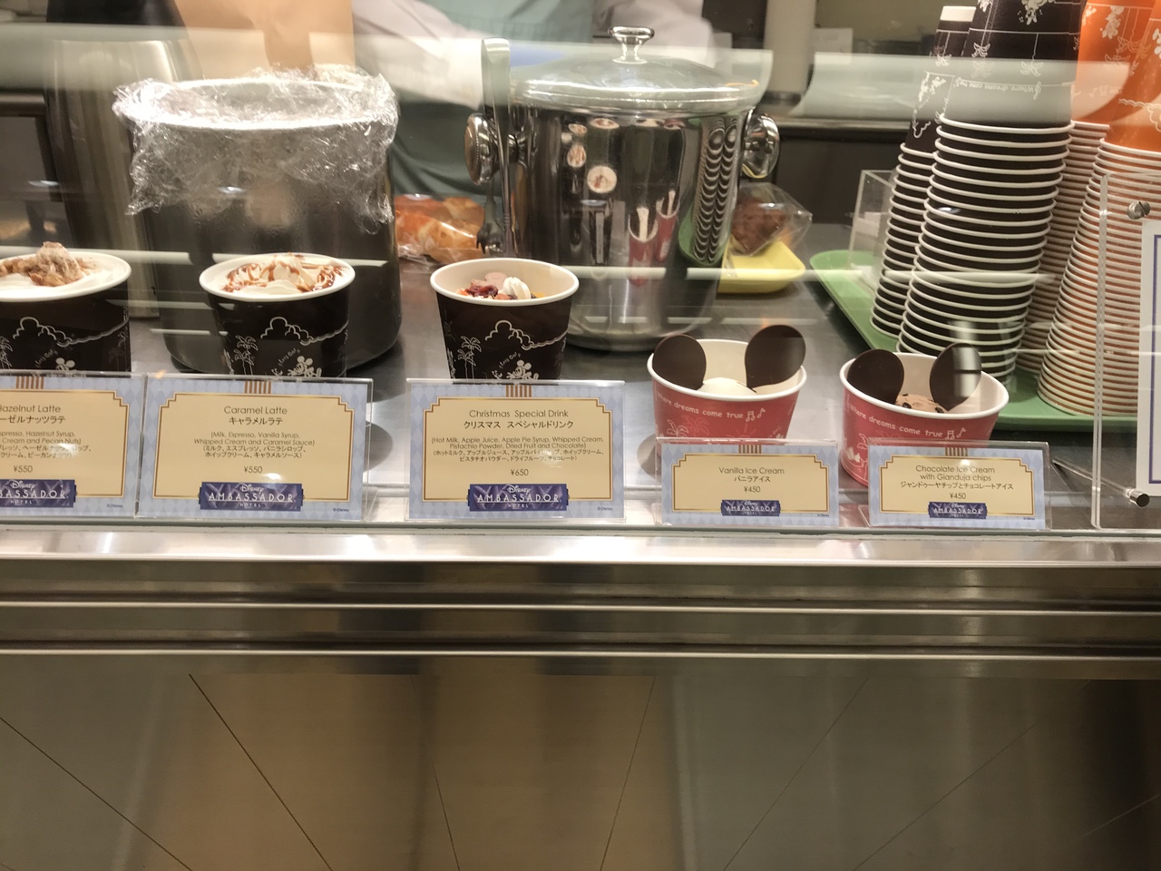 アンバサダーホテルの1階にあるデリです。その場で飲み物やサンドイッチなどを作ってくれます。イートインの設備もありますが、今は使っていません。そのほかに、ミニーのリボンやミッキーの手型など可愛い形のパンがあります。値段は高目ですが、かわいくておいしいです。クリスマスドリンクを飲みましたが、ドライフルーツなどが入っていておいしかったです。
