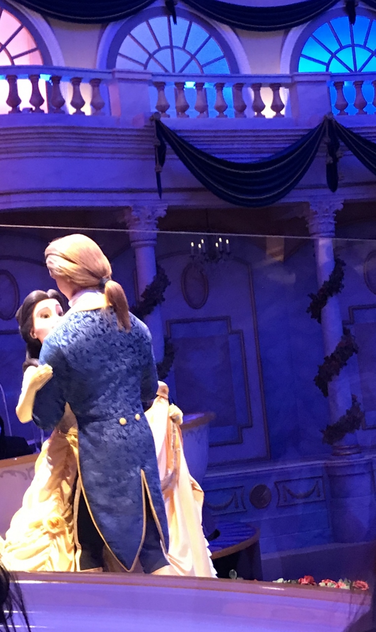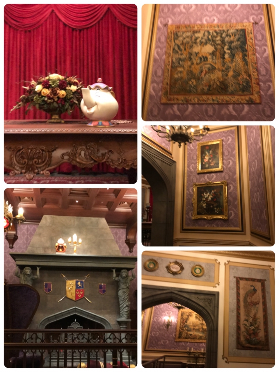 今年の9月末から始まった新アトラクションです。現在は、抽選で当たらないと入れません。美女と野獣のお城の中のアトラクションで、お城の中の部屋をいくつか歩いて通り抜け、ステンドグラスのある部屋で、絵本のように変わるステンドグラスを見ながら、お話を聞きます。その後10人乗りのお皿のような船?にのり、くるくる回りながら、お話の世界を動きます。乗り物は、パーテーションで分けられています。